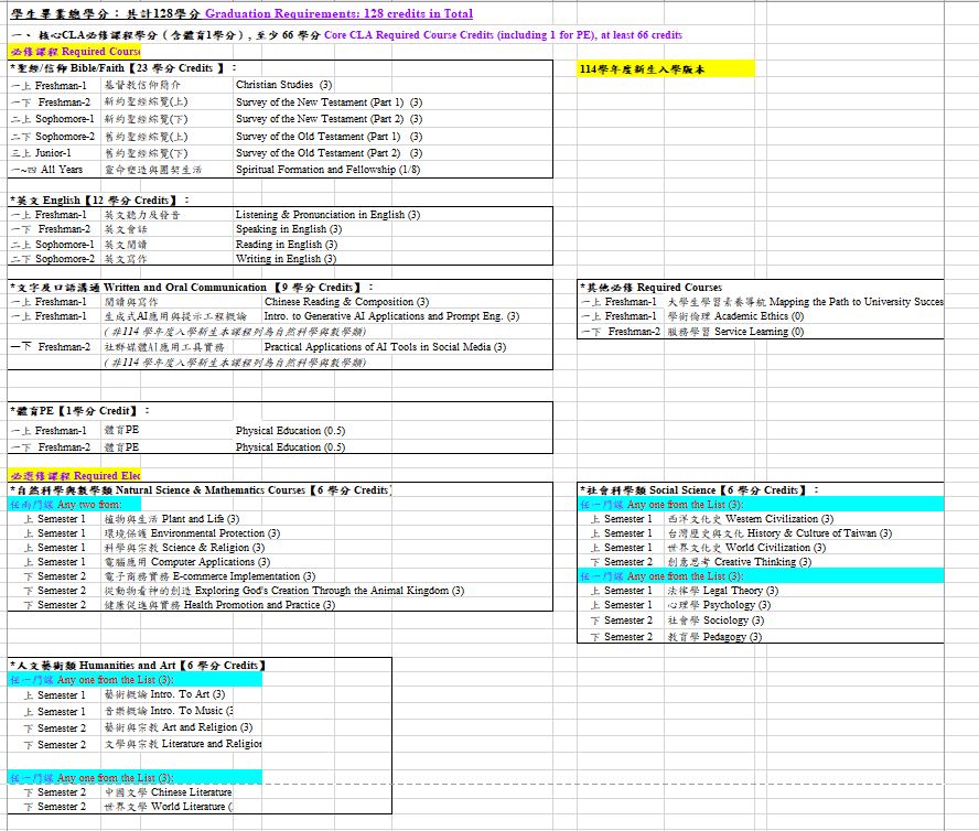 為符應博雅核心教育之理念,經多次會議討論,再次確立基督教博雅核心能力在追求8C核心能力,包括:基督徒品格(Christian Character)、思辨能力(Critical Thinking Skills)、溝通能力(Communication)、創新能力(Creativity)、合作能力(Cooperation)、憐憫關懷(Compassion)、專業技能(Competence in a Profession)、貢獻社會 (Contribution to family, church and society)。