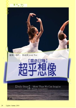 力重 新得 編輯 / 設計: 蔡庭箴 Jenny Tsai 超乎想像【靈命日糧】 【Daily Bread】 More Than We Can Imagine 作者:Wechat: JesusChrist611 P. 6 20 Lighter Autum 2016