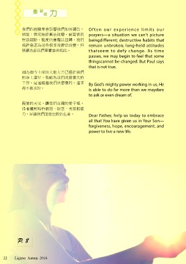 我們的經驗常會影響我們如何禱告。 Often our experience limits our